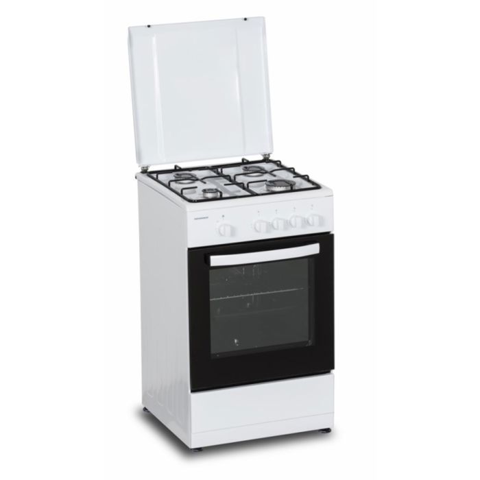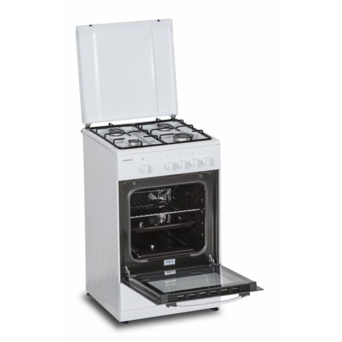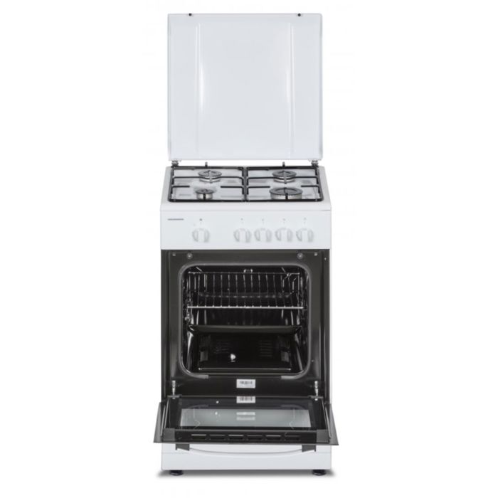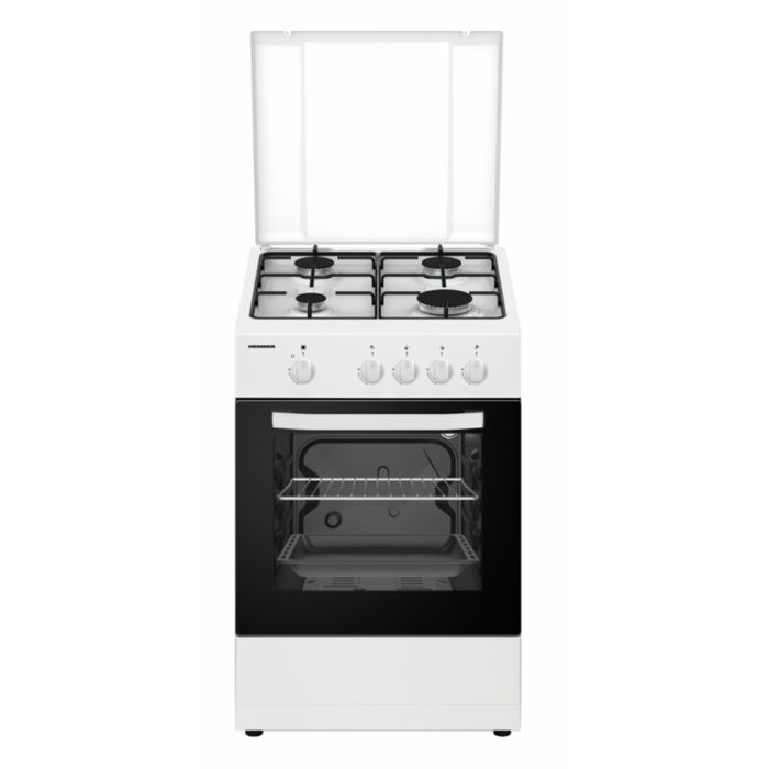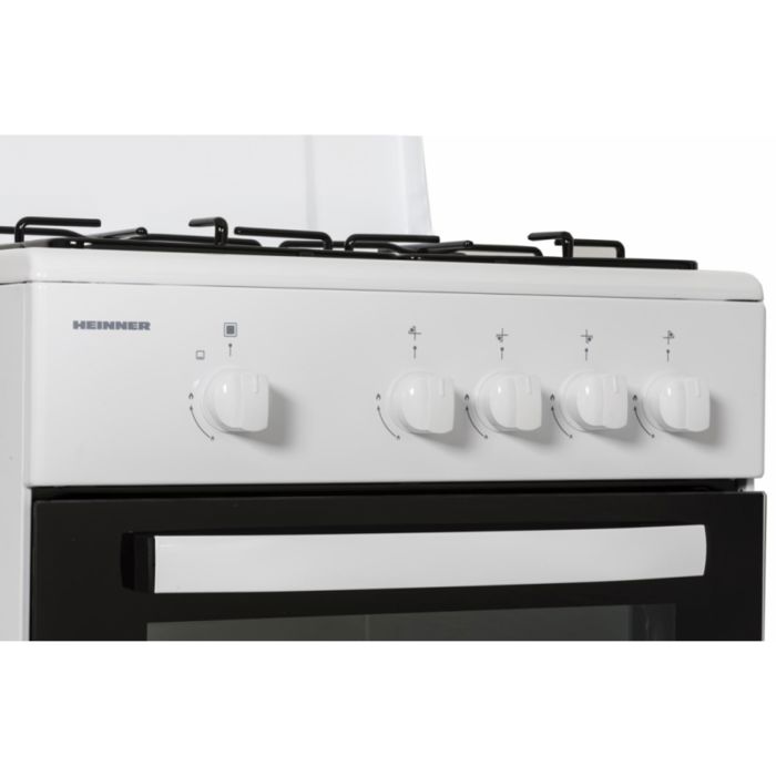 HEINNER HFSC-SME50WH PLINSKI ŠTEDNJAK, 50X55 CM, 4 PLAMENIKA, EMAJLIRANA POTPORA, METALNI POKLOPAC, SIGURNOSNI UREĐAJ ZA PLOČU I PEĆNICU, VRATA PEĆNICE S DVOSTRUKIM STAKLOM, LPG MLAZNICE UKLJUČENE, PLADANJ I KROMIRANI ROŠTILJ, BOJA: BIJELA