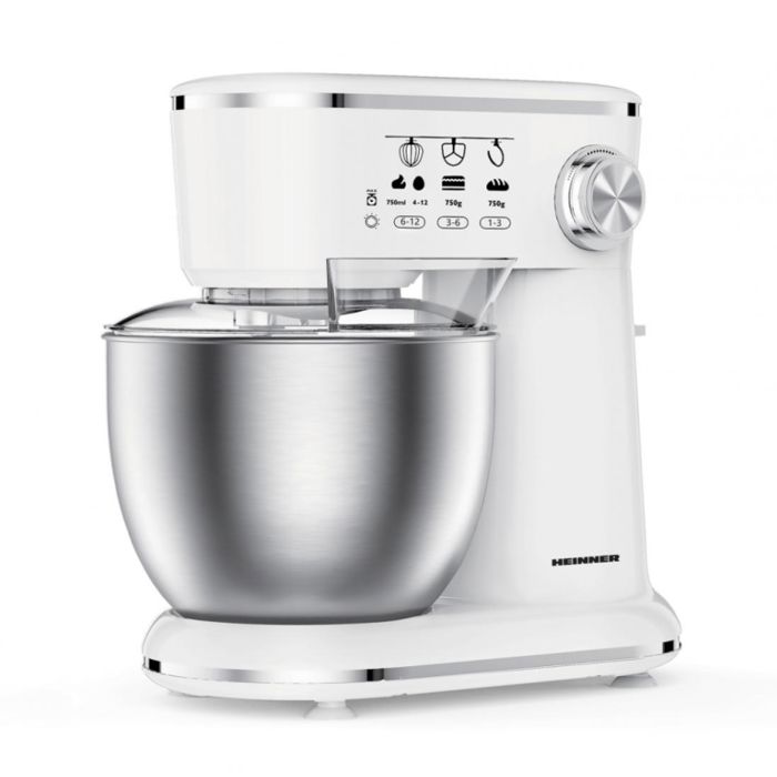HEINNER HPM-1000WHCH PLANETARNI MIKSER, 1000 W, POSUDA OD NEHRĐAJUĆEG ČELIKA: 5 L, 10 BRZINA, DODACI: PJENJAČA, KUKA ZA MIJEŠANJE, LOPATICA ZA MIJEŠANJE, PROZIRNI ZAŠTITNI POKLOPAC, BIJELA BOJA