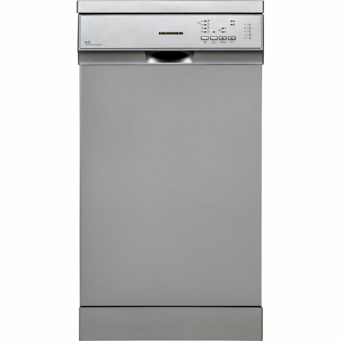 Heinner samostojeća perilica posuđa HDW-FS4552DSE++, energetski razred E, 10 setova, elektronička kontrola, 5 programa pranja, Brzi 30' program, Program šalice / delikatnosti, Intenzivan program, EKO program, opcija pola opterećenja, programabilni start (3-6-9H), gornja košara podesiva po visini (prazna), zaštita od poplava - Aquastop, potrošnja vode: 11L / ciklus pranja, dimenzije (ŠxDxH): 44,8 x 59,8 x 85 cm, boja: srebro Dimenzije Širina 45-cm Opće specifikacije Pola opterećenja Da Broj košara 2 Skupovi kapaciteta 10 setova Broj programa 5 Energetski razred E Display Ne Boja Srebro Odgođeni početak Da Funkcije proizvoda Aquastop, programabilni start, pola opterećenja Programe Brzih 30', nježnih 40°C, eko, super 50', intenzivno 65°C