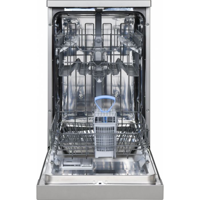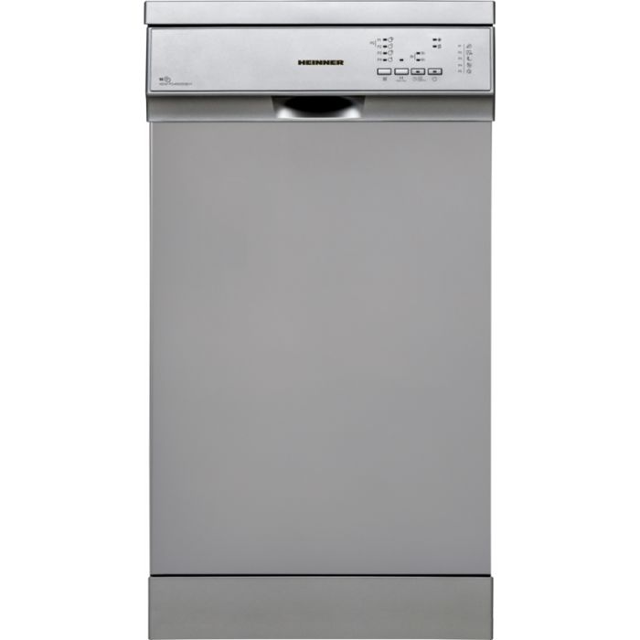 Heinner samostojeća perilica posuđa HDW-FS4552DSE++, energetski razred E, 10 setova, elektronička kontrola, 5 programa pranja, Brzi 30' program, Program šalice / delikatnosti, Intenzivan program, EKO program, opcija pola opterećenja, programabilni start (3-6-9H), gornja košara podesiva po visini (prazna), zaštita od poplava - Aquastop, potrošnja vode: 11L / ciklus pranja, dimenzije (ŠxDxH): 44,8 x 59,8 x 85 cm, boja: srebro Dimenzije Širina 45-cm Opće specifikacije Pola opterećenja Da Broj košara 2 Skupovi kapaciteta 10 setova Broj programa 5 Energetski razred E Display Ne Boja Srebro Odgođeni početak Da Funkcije proizvoda Aquastop, programabilni start, pola opterećenja Programe Brzih 30', nježnih 40°C, eko, super 50', intenzivno 65°C