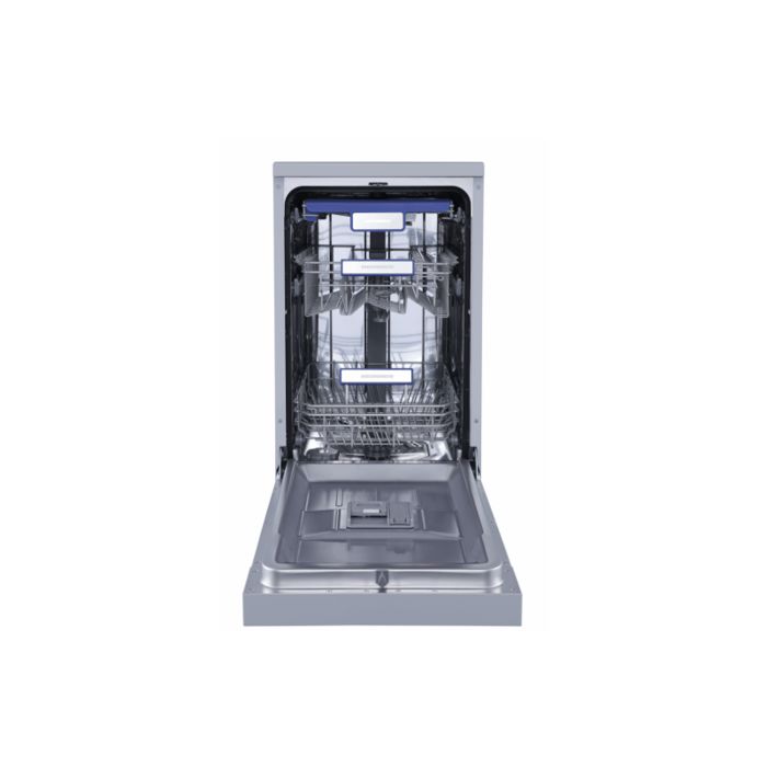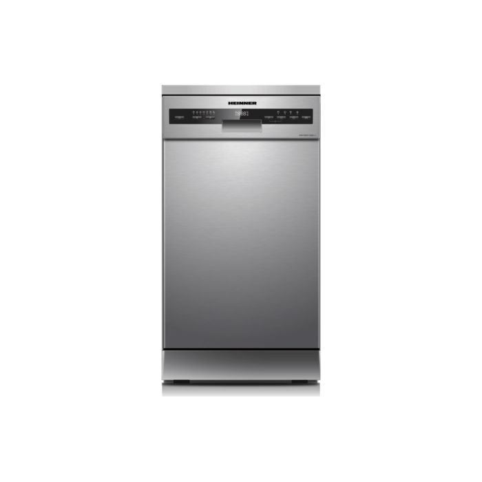 Heinner perilica posuđa HDW-FSM45710AXD+++, 10 mjesta za pranje, energetska klasa D, automatsko otvaranje vrata na kraju programa, elektroničko upravljanje, LED zaslon, 7 programa pranja, Auto Smart program: 55°C - 65°C, Brzi program 30', 90 min. program, Intenzivni program 65°C, programabilni početak (1-24H), opcija polovičnog punjenja na obje košare - Dvozonska, Dodatna funkcija čišćenja, Dodatna opcija sušenja, 3 košare - gornja ladica za pribor za jelo, Fleksibilan prostor - gornja košara s podesivom visinom (napunjena), donja košara: 2 sklopiva držača za tanjure, dječja brava, zaštita od poplave - Aquastop, potrošnja vode: 8,5L/ciklus pranja, dimenzije (ŠxVxD): 45 x 60 x 85 cm, boja: vrata - Izgled nehrđajućeg čelika/panel - Srebrna