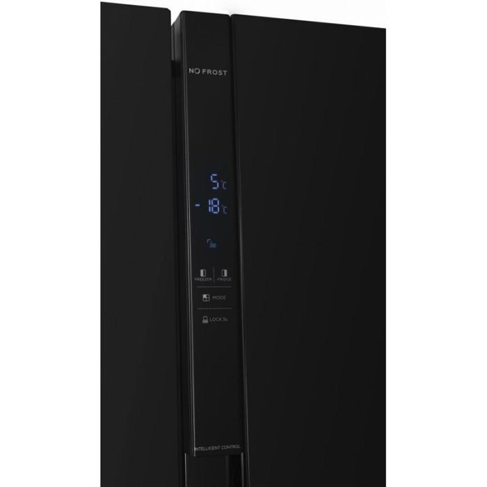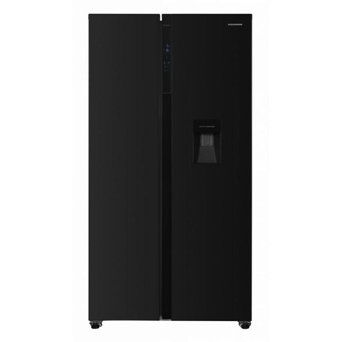 Heinner side by side hladnjak HSBS-H439NFBKWDE ++, Full No frost, Inverterski kompresor, Dozator vode, Energetski razred E, LED zaslon s kontrolom dodira, Ukupni kapacitet: 439L, Kapacitet hladnjaka: 288L, Kapacitet zamrzivača: 151L, LED svjetlo, SMART funkcija, ECO funkcija, Super hlađenje, Super zamrzavanje, Alarm otvorenih vrata, Dječja pristupna brava, 3 staklene police hladnjaka, 2 odjeljka za voće i povrće, 3 police zamrzivač, 2 ladice zamrzivač, Dimenzije proizvoda: 90 x 59,5 x 177 cm, Boja: Crna