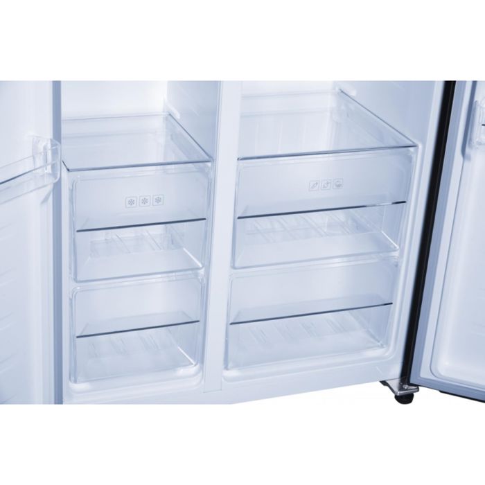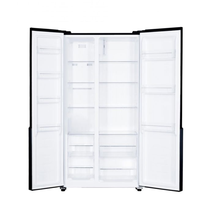 Side by side Heinner HSBS-H442NFBKE+, Full No frost, Inverterski kompresor, Energetska klasa E, LED zaslon s kontrolom na dodir, Ukupni kapacitet: 442L, Kapacitet hladnjaka: 291L, Kapacitet zamrzivača: 151L, LED svjetlo, SMART funkcija, ECO funkcija, Super Hlađenje, Super zamrzavanje, Alarm otvorenih vrata, Zaštita za djecu, 3 staklene police hladnjaka, 2 pretinca za voće i povrće, 3 police za zamrzavanje, 2 ladice za zamrzavanje, Dimenzije (ŠxDxV): 90,5 x 59,5 x 177 cm, Boja: crna