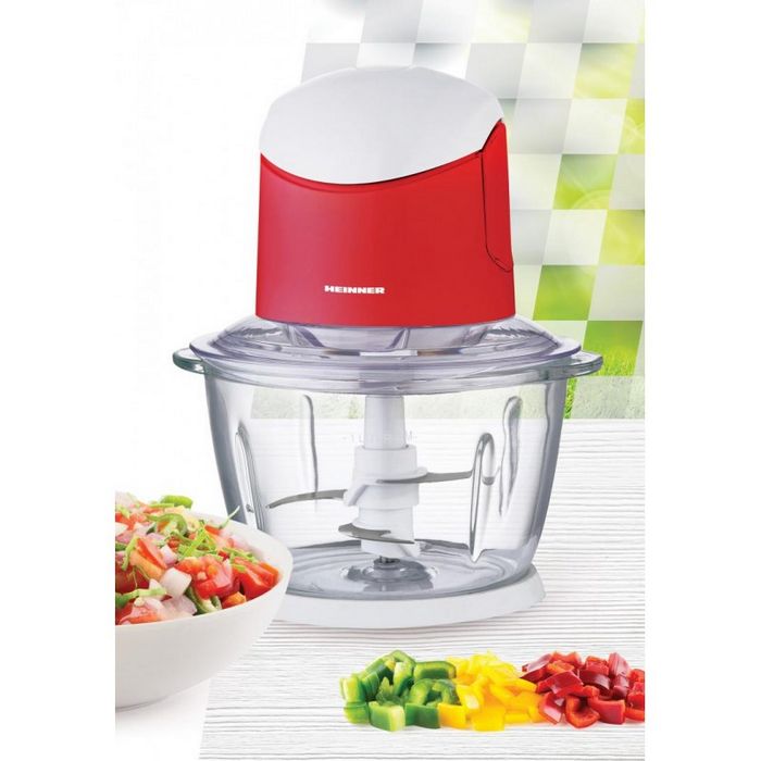 Heinner HMC-K500WHR sjeckalica povrća, kapacitet: 1L, staklena posuda, metalni zupčanik, 2 noža od nehrđajućeg čelika, protuklizna baza, sigurnosni sustav, snaga: 500W