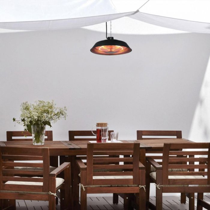 Maksimalna snaga: 1500 W Žarulja: Halogena žarulja Funkcija: Prekidač za uključivanje/isključivanje Površina grijanja 3-4 m² Kućište: Aluminij Boja: Crna Dimenzije proizvoda: 43*43*13,8 cm Neto težina: 2,1 kg Odobreno CE, ROHS, GS, IP44