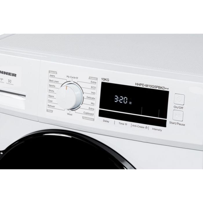 SUŠILICA RUBLJA S TOPLINSKOM PUMPOM HEINNER HHPD-M10G5PBKD++, KAPACITET PUNJENJA 10 KG, ENERGETSKA KLASA D, 16 PROGRAMA SUŠENJA, LED ZASLON, PROGRAM BRZOG SUŠENJA KOŠULJA, FUNKCIJA ODGOĐENOG POČETKA, FUNKCIJA PROTIV NABORA, ODABIR STUPNJA SUŠENJA, POKAZATELJ ČIŠĆENJA FILTRA ZA DLAČICE, POKAZATELJ PUNOG SPREMNIKA VODE, ZAŠTITA ZA DJECU, DIMENZIJE (DxŠxV): CM, BOJA: BIJELA