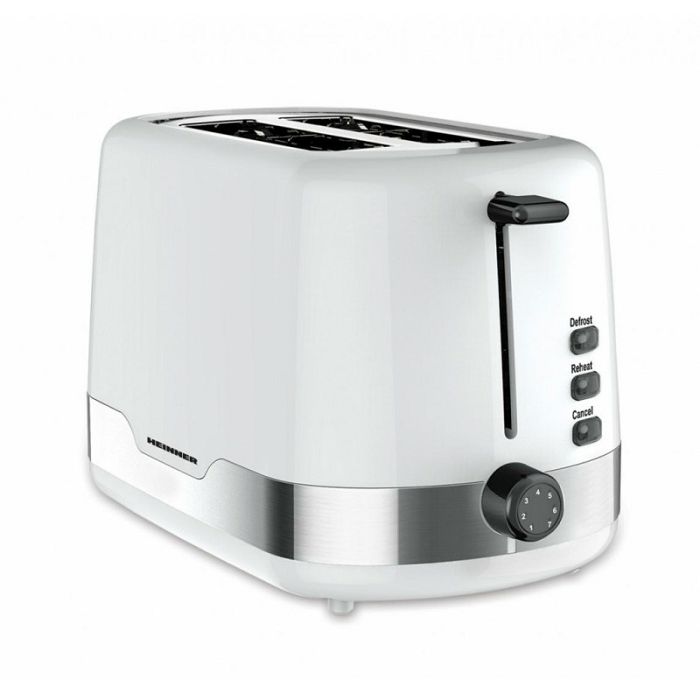 Heinner HTP-850WHSS toster, odmrzavanje, podgrijavanje, funkcija otkazivanja, 7 razina posmeđivanja, funkcija samocentričanja, kapacitet: 2 kriške, uklonjivi pladanj za mrvice, prostor za pohranu kabela, bijeli s ukrasima od nehrđajućeg čelika Neto dimenzije Težina 1,16 kg Visina 18,00 cm Širina 16,70 cm Dubina 30,20 cm