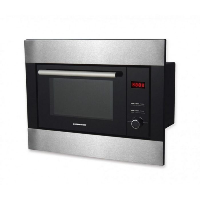 Ugradbena mikrovalna pećnica Heinner HMW-23BIXBK, kapacitet 23L, digitalno upravljanje, LED zaslon, snaga pećnice 800W, snaga roštilja 1000W, 5 koraka snage, 8 automatskih programa kuhanja, tajmer, maksimalno vrijeme kuhanja 60 min, funkcija odmrzavanja, zvučni signal na kraju programa, dječja pristupna brava, rotirajuća ploča promjera 270 mm, vertikalna vrata za otvaranje, dimenzije: 59,4x35,7x49,5 cm, Boja: Crno-nehrđajući čelik