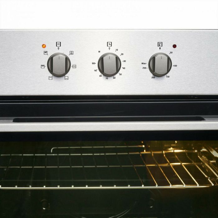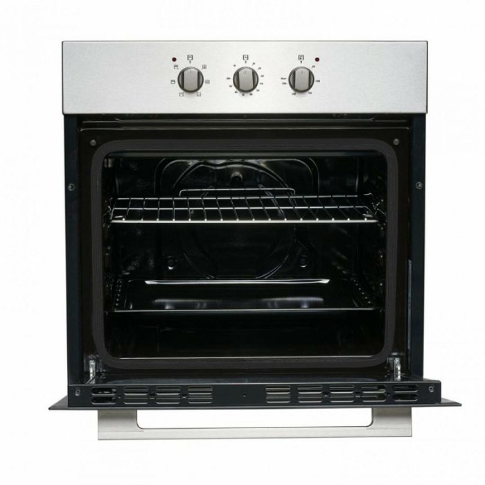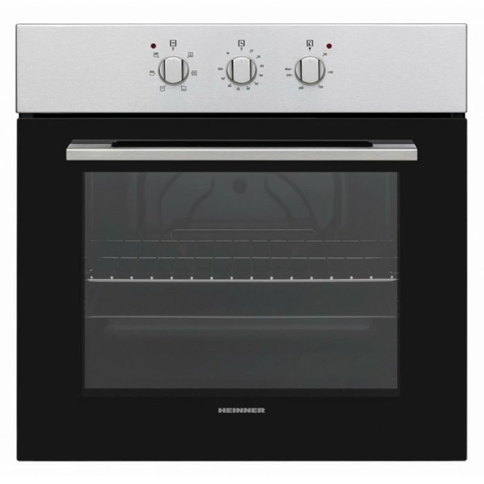 Ugradbena pećnica Heinner HBO-V656G-IX, statika, kapacitet 72L, 6 funkcija, energetska klasa A, mehanički tajmer, roštilj, rasvjeta, dvostruko uklonjivo staklo, žičani roštilj, pladanj, dimenzije (DxAxH): 59,5x55,0x59,5 cm, Boja: Nehrđajući čelik Neto dimenzije Težina 27,38 kg Visina 59,50 cm Širina 59,50 cm Dubina 57,50 cm Volumen pećnice 72 L Boja Inox Energetski razred A Samočišćenje Ne Broj funkcija 5 Vrsta upravljačke ploče Mehaničke Funkcije Roštilj, dvostruko odvojivo staklo, tajmer