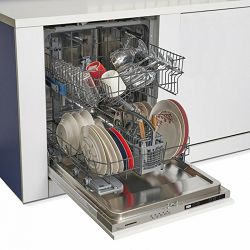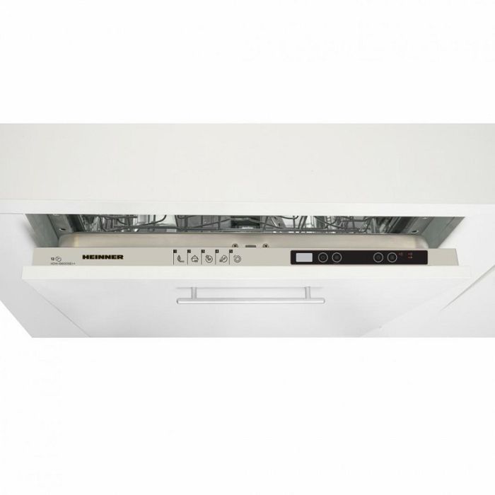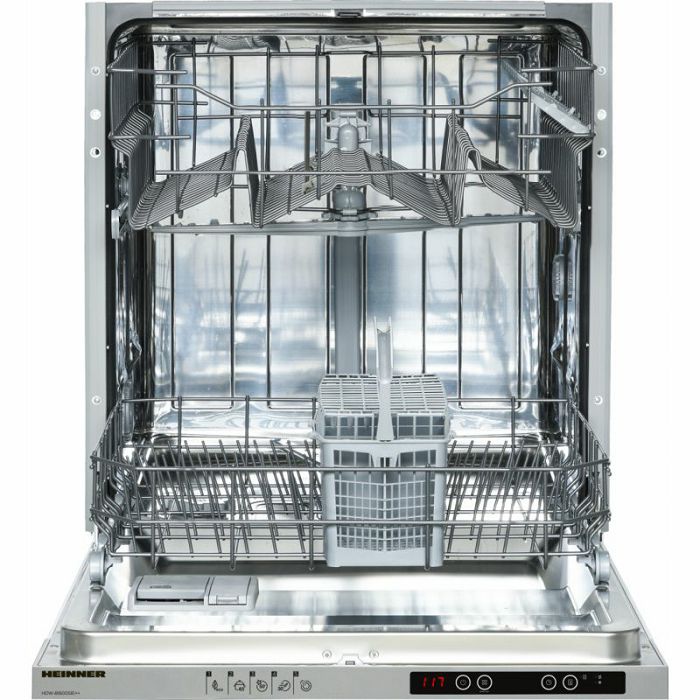 Heinner ugradbena perilica posuđa HDW-BI6005IE++ Širina 60 cm 12 setova Energetski razred E elektronička kontrola LED zaslon 5 programa pranja 30' brzi program intenzivan program opcija polukapaciteta Odgođeni start (3-6-9H) opcija tableta gornja košara podesiva po visini (kada je prazna) zaštita od poplava – Aquastop dimenzije: 82 x 59,8 x 55 cm