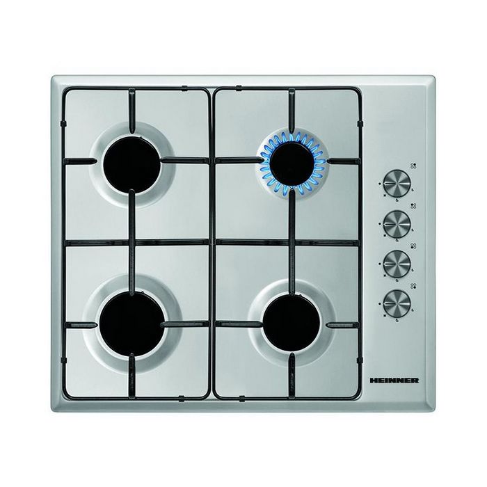 Ugradbena ploča Heinner HBH-S584I-IX, plin, 4 plamenika, integrirano električno paljenje, sustav sigurnosti plina, uključene mlaznice, nehrđajući čelik Specifikacije proizvoda Neto dimenzije Težina :7,8 kg Visina :10 cm Širina :51 cm Dubina : 58 cm Ostale specifikacije Materijal rešetke : Emajl Vrsta energetske pločice : Plin Broj zonaza kuhanje :4 Upravljačka ploča : Bočno