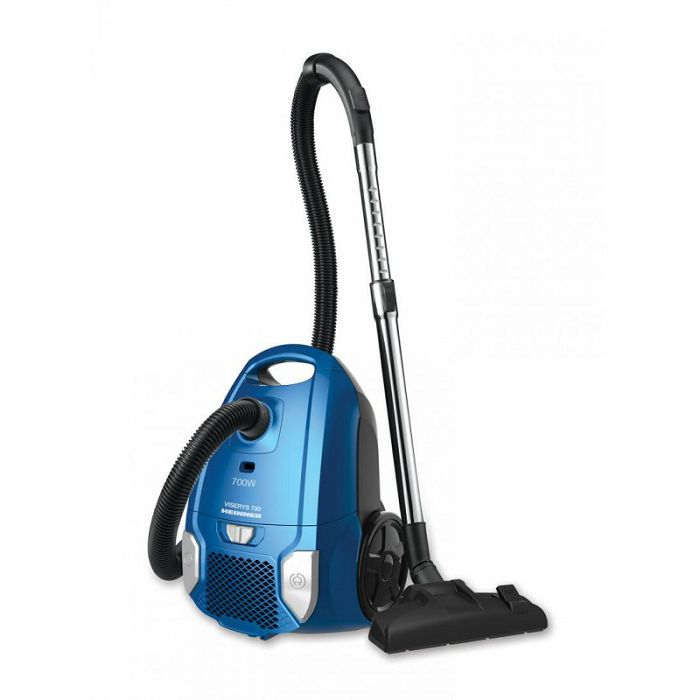 Heinner usisavač HVC-MBL1400-V2 usisivač sa vrećicama snaga: 700W, snaga usisavanja: 170W promjenjiva snaga kapacitet tekstilne vrećice: 3L HEPA filter 12 metalna teleskopska šipka 1 četka za prašinu i 2-u-1 dodatak za uske prostore automatsko uvlačenje kabel za napajanje duljina kabela: 5m boja: plava razina buke: 76dB