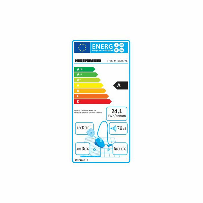 Glavne značajke HEPA filter 10 Snaga: 700W Sadržaj tekstilne vrećice: 2L Karakteristike Usisna snaga:> 170W Indikator pune vrećice Plastična cijev Automatski izvlačenje kabela za napajanje Tehnički podaci Razina buke: 78dB Dužina kabela za napajanje: 5m