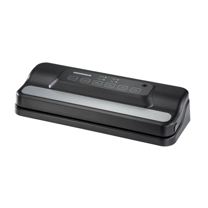 Heinner HAV-E110BKSL vakumirka, vakumiranje i brtvljenje, suho i mokro vakumiranje, funkcija brtvljenja, vakuum ladice, kontrola dodira, dva načina: normalno / osjetljiv, vrećice za valjanje uključene 20x200 mm, uključeno 5 pojedinačnih vrećica 20x30 cm, crijevo za vakuumske ladice, ugrađeni rezač, kompatibilan s širinom vrećica max 30cm, vakuumski kapacitet: 12L / min, maksimalni tlak: 80kpa, snaga: 110W, crna sa srebrnim ukrasom