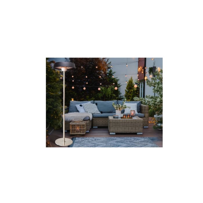 Vertikalni električni grijač s podnožjem 1000W/2000W Maksimalna snaga: 2000W Žara: halogena žarulja Kratkovalni infracrveni grijač s trenutnim zagrijavanjem Funkcija: Prekidač za uključivanje/isključivanje Površina grijanja 3-4m² Kućište: Aluminij + nehrđajući čelik Boja crna/siva Dimenzije proizvoda: 50 x 50 x 213cm Neto težina: 11,80kg CE, ROHS, IP44 odobreno