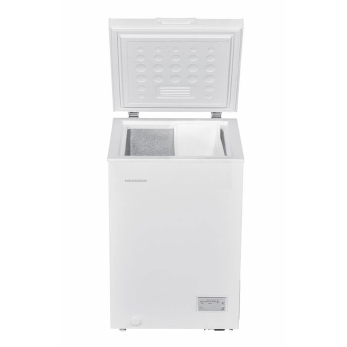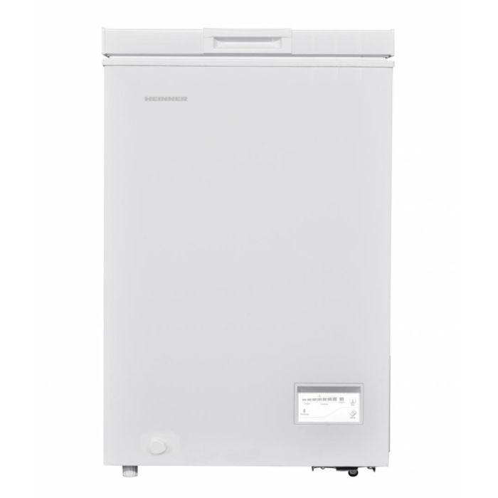 Škrinja Heinner HCF-HM100CE++, klasa energetske učinkovitosti: E, ukupni kapacitet: 98L, elektronička kontrola, otpornost na niske temperature (radi na niskim temperaturama - do -15°C), vodootporan zaslon, Fast funkcija zamrzavanja, 1 košara, ručno odmrzavanje, kapacitet zamrzavanja: 6 kg/24h, dimenzije (ŠxDxV): 54,5 × 54,5 × 84,5 cm, boja: Bijela