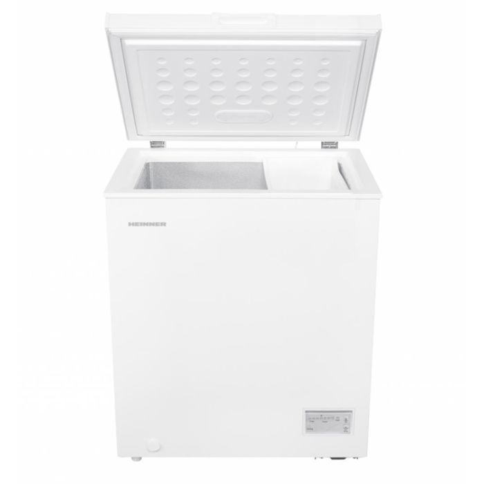 Škrinja Heinner HCF-HM145CE++, ukupni kapacitet: 142L, klasa energetske učinkovitosti E, elektronička kontrola, 1 košara, otpornost na niske temperature (radi na niskim temperaturama - do -15°C), vodootporan zaslon , dimenzije (ŠxDxV): 70,5x54,5x84,5 cm, bijela