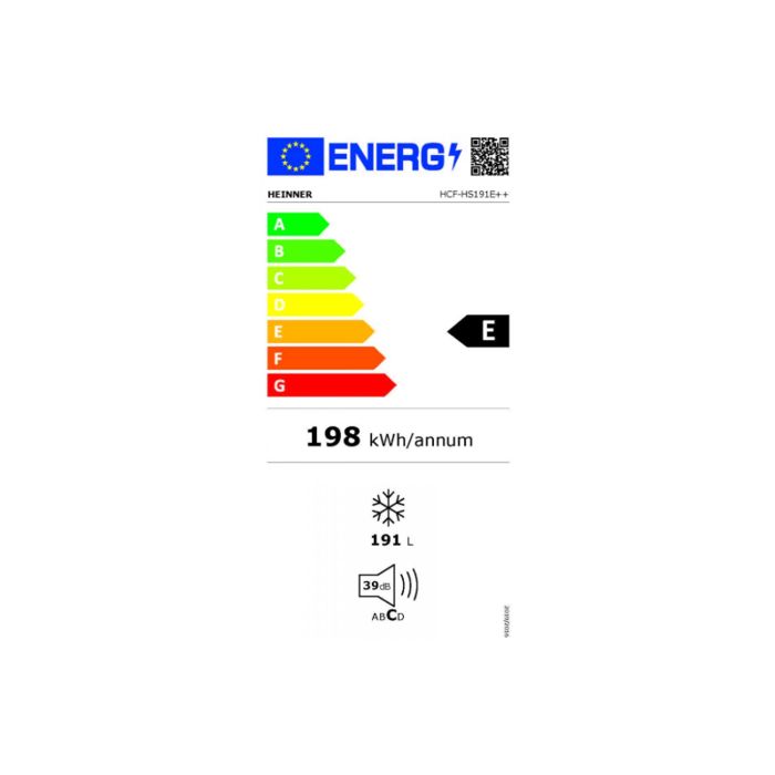 Heinner HCF-HS191E++ zamrzivač, energetska klasa: E, ukupni kapacitet: 191L, mehaničko upravljanje s podesivim termostatom, žičana košara, integrirana ručka, ručno odmrzavanje, kapacitet zamrzavanja: 8,6 kg/24 h, dimenzije (ŠxDxV): 89,1 × 55,7 × 85,3 cm, boja: Bijela
