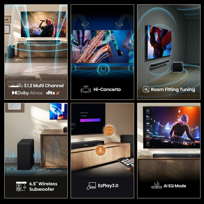 Zakoračite u 3.1.2-kanalni surround zvuk uz Dolby Atmos i DTS:X, gdje vas zadivljujući zvuk okružuje sa svih strana i svako mjesto pretvara u nezaboravno iskustvo.