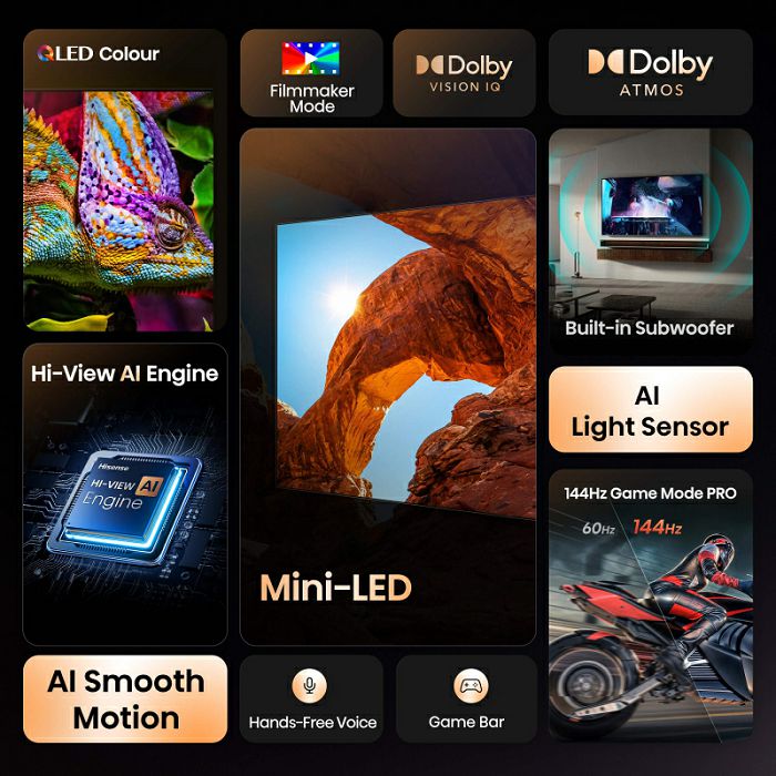 Mini-LED tehnologija podiže vaše iskustvo gledanja na višu razinu, pružajući živopisnu svjetlinu dok otkriva duboke, bogate sjene s iznimnom jasnoćom.
