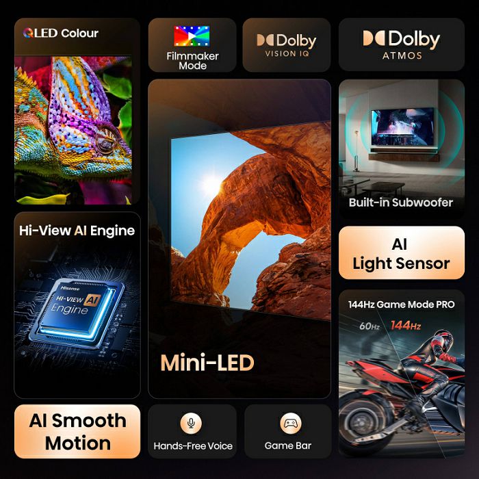 Mini-LED tehnologija podiže vaše iskustvo gledanja na višu razinu, pružajući živopisnu svjetlinu dok otkriva duboke, bogate sjene s iznimnom jasnoćom.