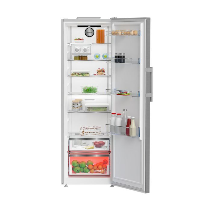 Ukupna zapremina odjeljka za svježu hranu i rashlađivanje (l): 365 Vrsta police za hladnjak: staklo Broj odjeljaka za povrće: 1 Kapacitet odjeljka za jaja: 6 Promjena smjera postavljanja vrata SmoothFit LED osvjetljenje Položaj zaslona: na vratima Elektroničke kontrole Samostojeći Tip kvake na vratima: metal Boja: biserni čelik Klasa energetske učinkovitosti: E Godišnja potrošnja električne energije (kWh/godišnje): 142.9 Dnevna potrošnja električne energije (kWh/dnevno): 0.392 Dnevna potrošnja pri temperaturi 32°C (kWh/dnevno): 0.548 Nivo buke (dBA): 35 dBA Klimatska klasa: SN-T Klasa emisije zvuka: B Maksimalna sobna temperatura neophodna za zadovoljavajući rad (°C): 43 Dnevna potrošnja pri temperaturi 16°C (kWh/dnevno): 0.235 Visina: 186.5 cm Širina: 59.7 cm Dubina: 70.9 cm Težina: 71 kg