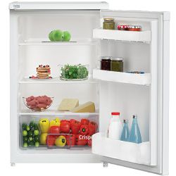 Beko TSE1524N Samostojeći hladnjak Ukupna zapremina (l): 128 Ukupna zapremina odjeljka za svježu hranu i rashlađivanje (l): 128 Promjena smjera postavljanja vrata LED osvjetljenje Mehaničke kontrole Boja: bijela Klasa energetske učinkovitosti: E Godišnja potrošnja električne energije (kWh/godišnje): 90 Razina buke (dBA): 37 dBA Klimatska klasa: SN-T Visina: 84 cm Širina: 54 cm Dubina: 59 cm Težina: 27 kg