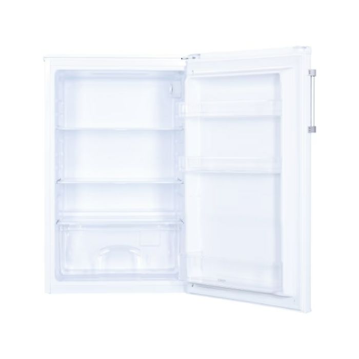 Samostojeći hladnjak Jedna vrata - table top Odmrzavanje hladnjaka: ručno Rasvjeta: LED Unutrašnja upravljačka ploča Upravljanje: mehaničko Boja: bijela Ručke: vanjska ručka Šarka na vratima: desno Promjena smjera otvaranja vrata Klimatski razred: N, ST Razred energetske učinkovitosti: E Godišnja potrošnja energije (kWh/god): 90 Razred emisije buke koja se prenosi zrakom: C Emisija buke koja se prenosi zrakom (dBA): 39 Zbroj zapremina odjeljaka za hlađenje (dm3 ili L): 127 Visina (mm): 850 Širina (mm): 550 Dubina (mm): 580 Neto težina (kg): 26