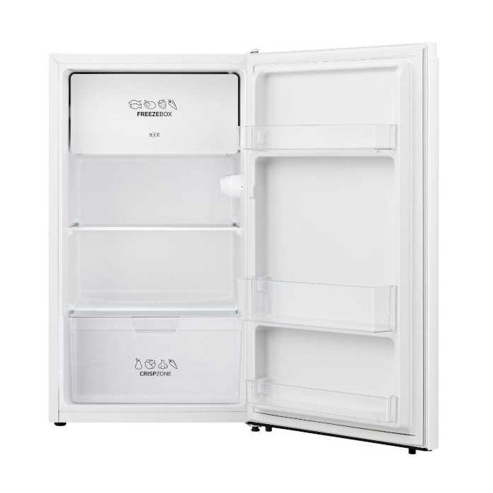 Gorenje RB39EPW4 Hladnjak sa odjeljkom za zamrzavanje Tip konstrukcije: samostojeća Linija: Primary Line Energetski razred: E Energetski razred buke: C Lokacija zamrzivačkog dijela: gore Boja aparata: bijela Otvaranje vrata: desno promjenjivo Broj vrata: 1 Ukupni volumen: 82 l Obujam rashladnog dijela: 75 l Vrijeme čuvanja u slučaju nestanka el.energije: 5 h Procijenjena godišnja potrošnja električne energije: 125 kWh Vrsta upravljanja: mehaničko 1 polica za boce bez držača 2 police na vratima LED osvjetljenje Broj premjestivih polica u odjeljku hladnjaka: 1 kom Broj staklenih polica u rashladnom dijelu: 2 kom Posudica za jaja: 1/6 1 klasična posudica za led Razina buke (max.): 38 dB(A) Broj kompresora: 1 kompresor Rashladna tekućina: R600a Polaganje aparata: dopušteno Skriveni kondenzator Broj neovisnih rashladnih sustava: 1 Širina proizvoda: 475 mm Visina proizvoda: 842 mm Dubina proizvoda: 448 mm