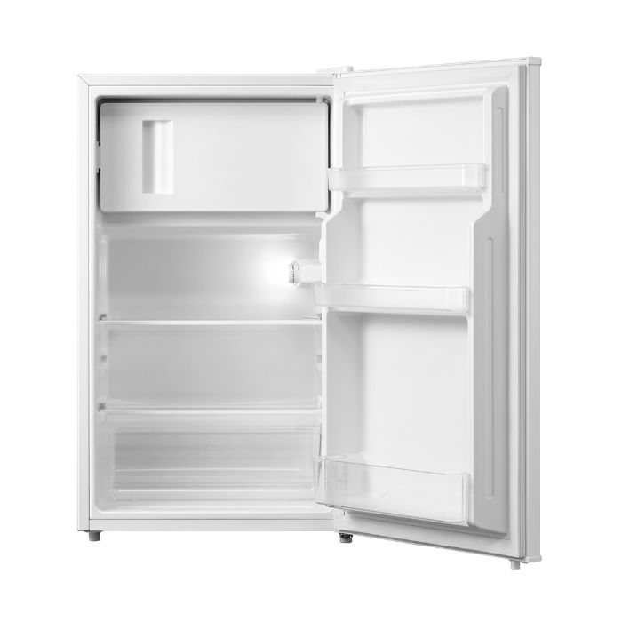 Boja: bijela Ukupni korisni volumen: 80 l Visina/ Širina/ Dubina: 84,5/47,5/44,5 cm Odleđivanje prostora za hlađenje: ručno Odleđivanje prostora za zaleđivanje: ručno Reguliranje temperature Osvjetljenje unutarnjeg prostora Staklene police u hladnjaku: 2 Posuda za povrće: 1 Nogice za niveliranje Promjenjiv smjer otvaranja vrata Rashladno sredstvo: R600a Količina rashladnog sredstva: 0,024 kg Klimatska klasa: N/ST Broj kompresora: 1 Razred energetske učinkovitosti: E Potrošnja energije kWh/god: 137 Neto smještajni obujam volumen odjeljka za svježe namirnice (5°C): 68 l Neto smještajni obujam volumen odjeljka za zaleđene namirnice: 12 l Broj zvjezdica: 4 Razina buke: 41 dB Potrošnja energije kWh/24h: 0,59 Masa aparata neto/bruto: 21/23,2 kg