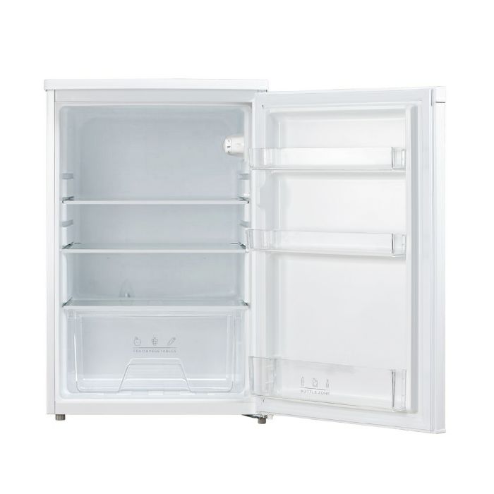 Boja: bijela Ukupni korisni volumen: 131 Visina/ Širina/ Dubina: 84,5/55,3/57,4cm Odleđivanje prostora za hlađenje: automatsko Reguliranje temperature Osvjetljenje unutarnjeg prostora Staklene police u hladnjaku: 3 Posuda za povrće: 1 Nogice za niveliranje Promjenjiv smjer otvaranja vrata Rashladno sredstvo: R600a Količina rashladnog sredstva: 0,024 kg Klimatska klasa: SN/N/ST Broj kompresora: 1 Razred energetske učinkovitosti: E Potrošnja energije kWh/god: 90 Neto smještajni obujam volumen odjeljka za svježe namirnice (5°C): 131 l Razina buke: 39 dB Potrošnja energije kWh/24h: 0,365 Masa aparata neto/bruto: 25,8/28 kg