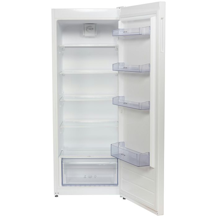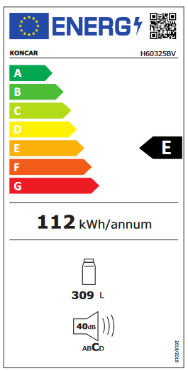 Končar H60325BV Samostojeći hladnjak Boja: bijela Ukupni korisni volumen: 309 l Visina/ Širina/ Dubina: 155,5/59,5/65 cm Odleđivanje prostora za hlađenje: manualno Reguliranje temperature Osvjetljenje unutarnjeg prostora Staklene police u hladnjaku: 5 Posuda za povrće Nogice za niveliranje Promjenjiv smjer otvaranja vrata Rashladno sredstvo: R600a Količina rashladnog sredstva: 0,031kg Klimatska klasa: T/N Broj kompresora: 1 Razred energetske učinkovitosti: E Potrošnja energije kWh/god: 112 Neto smještajni obujam volumen odjeljka za svježe namirnice (5°C): 309 l Razina buke: 40 dB Masa aparata neto/bruto: 48/51 kg