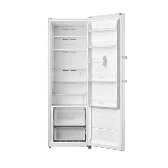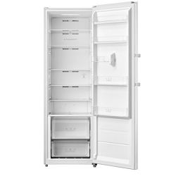 Boja: bijela Ukupni korisni volumen: 362 l Visina/ Širina/ Dubina: 185/59,5/61,8 cm No Frost Vanjski display Odleđivanje prostora za hlađenje: automatsko Reguliranje temperature Osvjetljenje unutarnjeg prostora Staklene police u hladnjaku: 6 Posuda za povrće: 2 Nogice za niveliranje Promjenjiv smjer otvaranja vrata Rashladno sredstvo: R600a Količina rashladnog sredstva: 0,042kg Klimatska klasa: SN/N/ST/T Broj kompresora: 1 Razred energetske učinkovitosti: E Potrošnja energije kWh/god: 118 Neto smještajni obujam volumen odjeljka za svježe namirnice (5°C): 362 l Razina buke: 41 dB Masa aparata neto/bruto: 59/67 kg