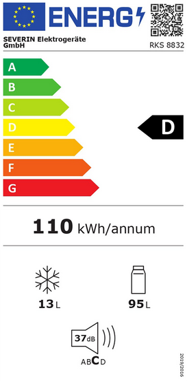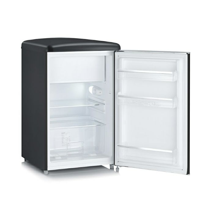 Severin RKS 8832 Stolni hladnjak s odjeljkom za zamrzavanje Kapacitet: 108 litara (95 l + 13 l) Energetska klasa: D Godišnja potrošnja energije: 110 kWh Razina buke: 37 dB LED rasvjeta VEGGIBOX ladica Dimenzije: 89,5 x 55 x 61,5 cm Boja: mat crna