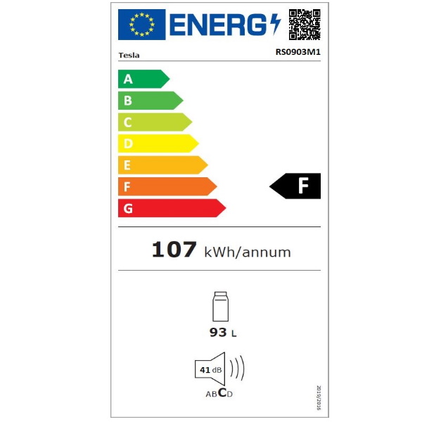 Tesla RS0903M1 Samostojeci hladnjak Police od ojačanog stakla koje ne dozvoljavaju da se tekućina prolije van njih. Neto zapremina (l): 93 Ručno otapanje Energetski razred: F Zapremina hladnjaka: 93 l Razina buke: 41 dB Boja: bijela Dimenzije (mm): 472 x 850 x 450