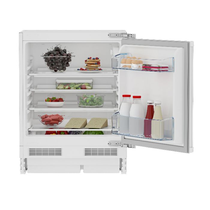 Beko BU1104N Ugradbeni hladnjak Ukupna zapremina (l): 130 Ukupna zapremina odjeljka za svježu hranu i rashlađivanje (l): 130 Promjena smjera otvaranja vrata LED osvjetljenje Mehaničke kontrole Ugradnja ispod pulta Boja: bijela Klasa energetske učinkovitosti: E Godišnja potrošnja električne energije (kWh/godišnje): 92.07 Razina buke (dBA): 35 dBA Klimatska klasa: SN-T Visina: 82 cm Širina: 59.5 cm Dubina: 54.5 cm Težina: 29 kg