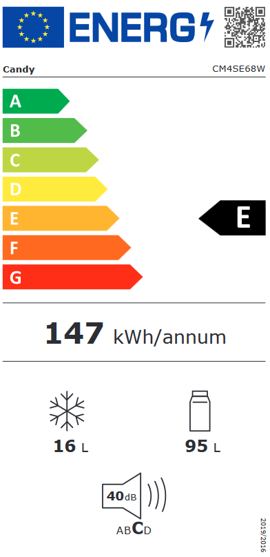 Tehnologija hlađenja: statičko ventilacijski Odmrzavanje ledenice: ručno Odmrzavanje hladnjaka: automatsko Unutrašnja upravljačka ploča Mehanički termostat Materijal polica: staklo Boja: bijela Rasvjeta: Led Klimatska klasa: N, ST Vrijeme čuvanja namirnica u slučaju nestanka električne energije: 11 h Razred energetske učinkovitosti: E Godišnja potrošnja energije (kWh/god): 147 Razred emisije buke koja se prenosi zrakom: C Emisija buke koja se prenosi zrakom (dBA): 40 Zbroj zapremina odjeljaka za hlađenje: 95 l Zbroj zapremina odjeljaka za zamrzavanje: 16 l Ukupan zbroj zapremina svih odjeljaka: 111 l Visina (mm): 826 Širina (mm): 596 Dubina (mm): 556 Neto težina (kg): 28,8