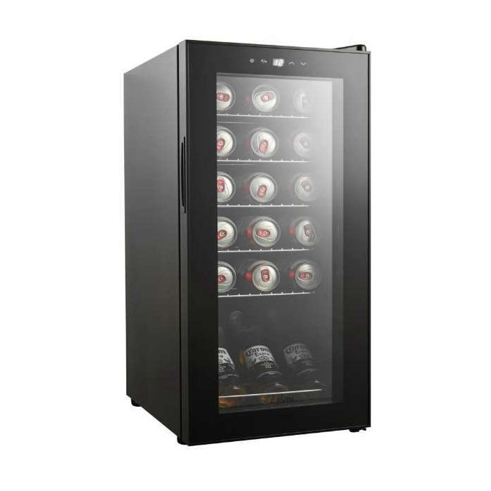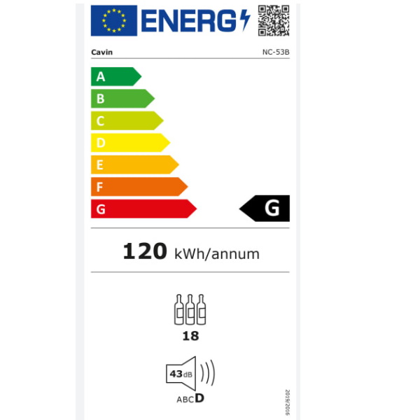 Cavin NC-53B Hladnjak za pivu i sokove Serija Northern Collection Crni okvir vrata Kompresorsko hlađenje UV zaštitno staklo Automatsko odmrzavanje Bijelo LED unutarnje svjetlo LED display Kapacitet: 63 limenke (0.33 l) 1 zona (3-18 °C) Širina: 34,5 cm Visina: 77 cm Dubina: 45 cm Energetska i klimatska klasa: G, ST Potrošnja: 120 kWh/god Težina: 25 kg Razina buke: 43 dB