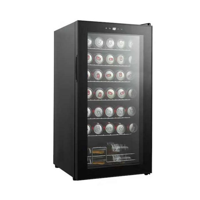 Cavin NC-82B Hladnjak za pivu i sokove Serija Northern Collection Crni okvir vrata Kompresorsko hlađenje UV zaštitno staklo Automatsko odmrzavanje Bijelo LED unutarnje svjetlo LED display Kapacitet: 110 limenki (0.33 l) 1 zona (3-18 °C) Širina: 43 cm Visina: 84 cm Dubina: 45 cm Energetska i klimatska klasa: G, ST Potrošnja: 145 kWh/god Težina: 35 kg Razina buke: 39 dB