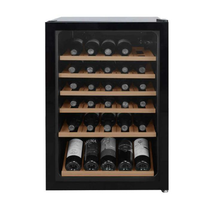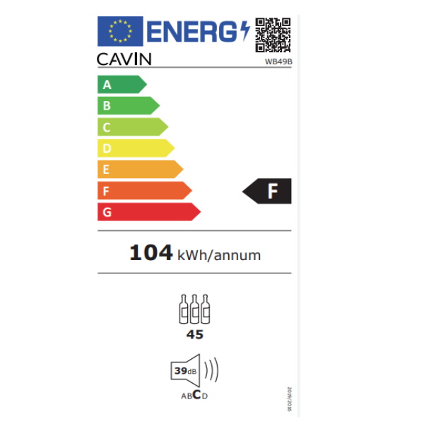 Cavin WB49B Hladnjak za vino iz serije Polar Collection Crni okvir vrata Kompresorsko hlađenje UV zaštitno staklo Mehaničke kontrole Bijelo LED unutarnje svjetlo Kapacitet: 45 boca 1 zona hlađenja (4-22 °C) Širina: 54 cm Visina: 84,5 cm Dubina: 54,8 cm Energetska i klimatska klasa: G, N Potrošnja: 142 kWh/god Težina: 38 kg Razina buke: 39 dB
