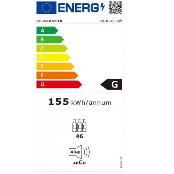Kapacitet: 46 boca, 145 lit LCD displej Drvene police Dvije komore za hlađenje 5-12 C i 12-20 C Inox ručka i crni okvir oko vrata Potrošnja struje: 140 kWh/god Energetska klasa: G Dimenzije (V x Š x D): 82 x 59,5 x 57,8 cm