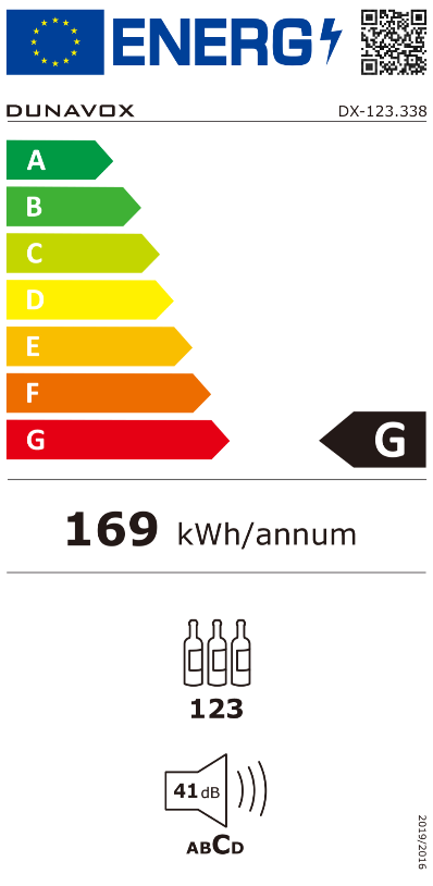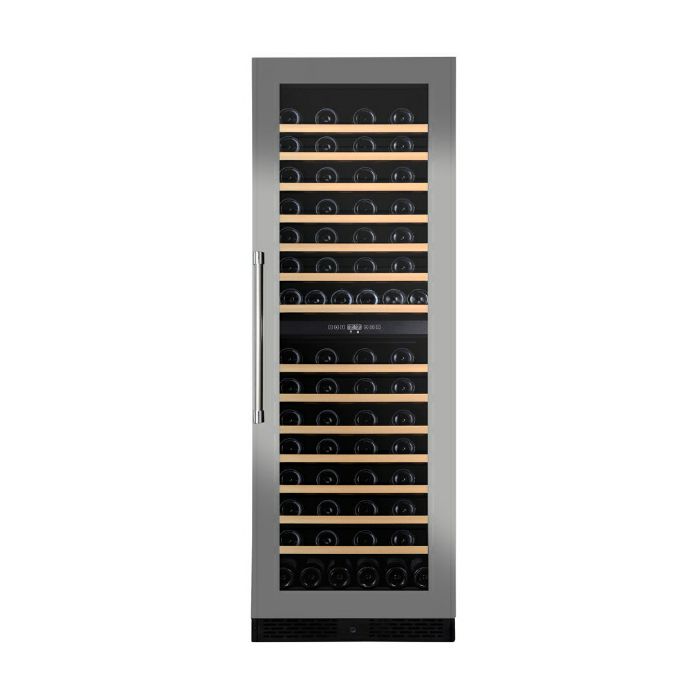 Kapacitet: 123 boce, 338 lit Dvije komore za hlađenje: 5C-12C, 12C-20C Zatamnjeno staklo Inox okvir oko vrata Drvene police Reverzibilna vrata Digitalni termostat Plavo, bijelo ili jantarno LED svjetlo Dimenzije: 1768 x 590 x 70 mm Potrošnja: 146 kWh/god Energetska klasa: G