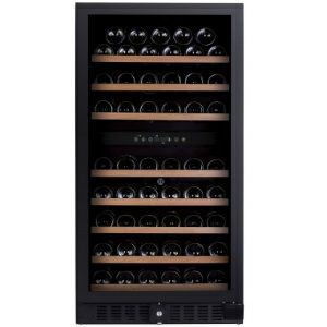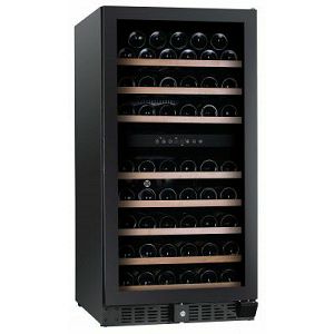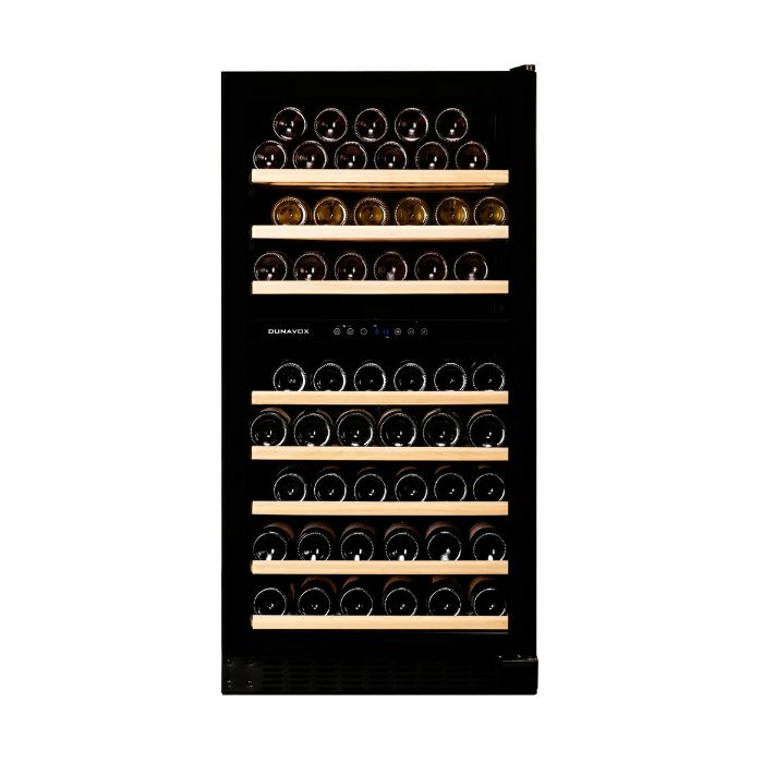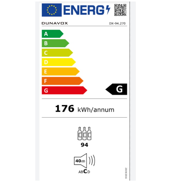 DX-94.270DBK Ekskluzivni ugradbeni hladnjak za vino sa dinamičkm kompresorom Boca (0,75 lit bordeaux): 94 Komora: 2 Kućište: crno Staklena vrata sa UV filterom Reverzibilna vrata Zaključavanje Police: drvene Svjetlo Odmrzavanje: automatsko Ugljeni filter Zaštita od smrzavanja Kapacitet: 270 l Visina: 1200 mm Širina: 595 mm Dubina: 680 mm Plin za hlađenje: R600a Potrošnja: 314 kWh/god Energetska klasa: D Klimatska klasa: N,SN,ST Nivo buke: 40 kg Netto težina: 72 kg