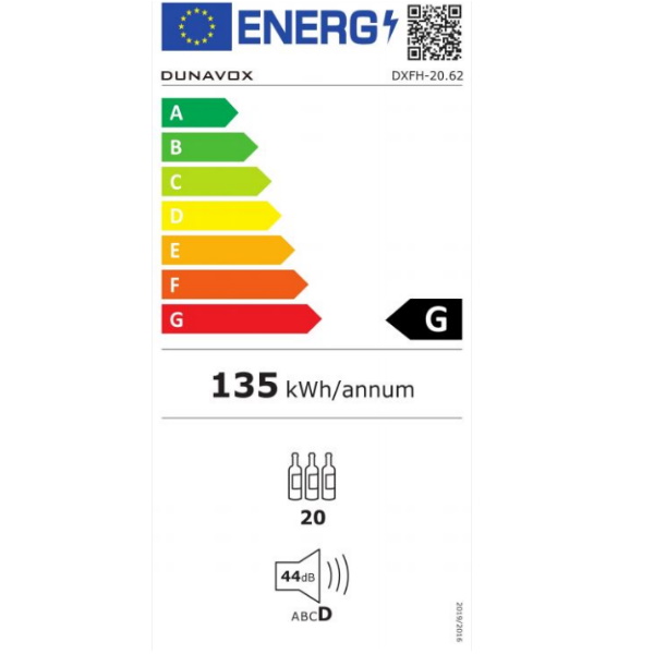 Za max. 20 boca/62 lit volumen • Drvene unutarnje police • Stabilizatori protiv vibracija • LCD displej • Hlađenje:4C-18C, temperatura okoline< 30C • Prednje UV staklo •En.klasa: B, potrošnja: 195 kWh/god• Boja crnaDimenzije (mm): 430x650x480