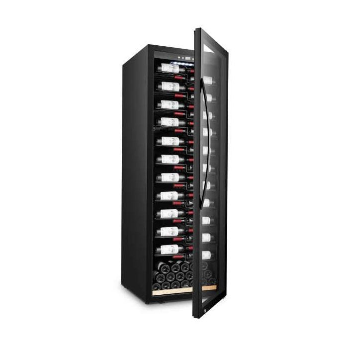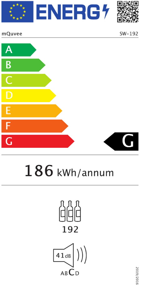 mQuvée WineExpert SW-192BL Label-view (s pogledom na etikete) Samostojeći hladnjak za vino Stakleni crni okvir oko vrata Hlađenje od 5 - 20 °C Kompresorsko hlađenje UV zaštitno staklo Zaštita boca od vibracija Automatsko odleđivanje Bijelo LED unutarnje svjetlo LED display Kapacitet: 153 boce 1 zona (5 - 20 °C) Crna ručka Hlađenje crnog ili bijelog vina Š: 59,5 x V: 187 x D: 69,5 cm Energetska i klimatska klasa: G, ST Potrošnja: 186 KWh/god Nivo buke: 41 dB Težina: 89 kg