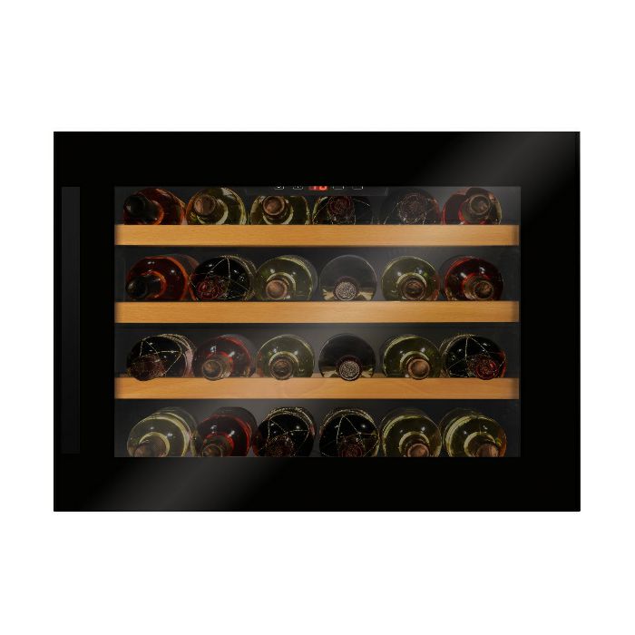 Amica WCB1K54B24.1 Kapacitet: 24 boca / 63 lit. Crna vrata Materijal ručke - metal Ugradbeni hladnjak za montažu u element Reverzibilna vrata UV filler LED rasvjeta 1 zona Drvene police Temperatura: 5-20 °C Energetska klasa: G Potrošnja: 140 kWh/god Dimenzije (cm): 45,5(v) x 59,5(š) x 60(d) Nivo buke: 39dB