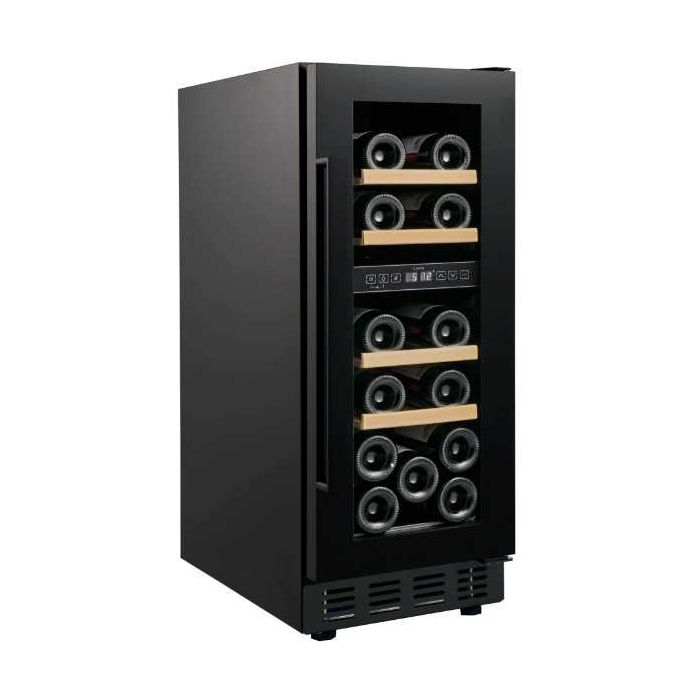 Cavin ACD30FGB Ugradbeni - podpultni hladnjak za vino iz serije Arctic Collection Hlađenje crnog i bijelog vina Crni okvir vrata Kompresorsko hlađenje UV zaštitno staklo Zaštita boca od vibracija Ugljeni filter Reverzibilna vrata Automatsko odmrzavanje Podesive nogice - 5 cm Alarm temperature i vrata Bijelo LED unutarnje svjetlo LED display Visina vrata: 71,5 cm Kapacitet 17 boca 2 zone (5°C-20°C) Širina: 29,5 cm Visina: 82/87 cm Dubina: 58 cm Crna ručka Energetska i klimatska klasa: G, ST Potrošnja: 135 kWh/god Težina: 30 kg Nivo buke: 40 dB