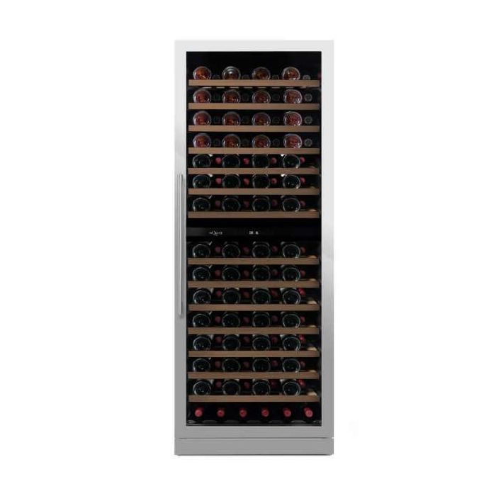 WineCave WCD187SH Ugradbeni hladnjak za vino Inox okvir vrata Kompresorsko hlađenje UV zaštitno staklo Zaštita boca od vibracija Ugljeni filter Reverzibilna vrata Automatsko odmrzavanje Podesive nogice - 7 cm Alarm visoke temperature i otvorenih vrata Bijelo LED unutarnje svjetlo LED display Kapacitet 123 boce 2 zone (5-20 °C) Inox ručka Hlađenje crnog i bijelog vina Š: 59,5 x V: 183/191 x D: 57 cm Energetska i klimatska klasa: G, ST, SN Potrošnja: 174 kWh/god Težina: 93 kg Razina buke: 36 dB