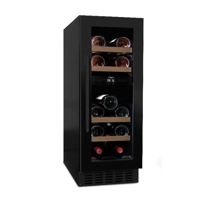 WineCave WCD30AB-700 Ugradbeni - podpultni hladnjak za vino Antracit crni okvir oko vrata Kompresorsko hlađenje UV zaštitno staklo Zaštita boca od vibracija Reverzibilna vrata Automatsko odmrzavanje Podesive nogice - 8 cm Alarm visoke temperature i otvorenih vrata Bijelo LED unutarnje svjetlo LED display Visina vrata 70 cm Kapacitet 16 boca 2 zone (5-20 °C) Crna ručka Hlađenje crnog i bijelog vina Š: 29,5 x V: 82/90 x D: 57,5 cm Energetska i klimatska klasa: F, ST Potrošnja: 98 kWh/god Težina: 28 kg Razina buke: 39 dB