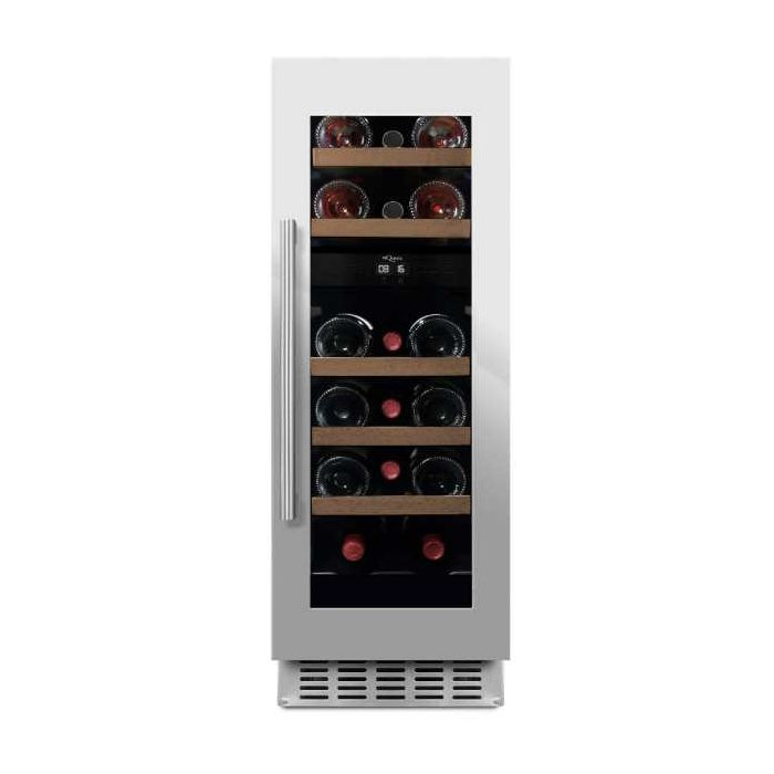 WineCave WCD30S-780 Ugradbeni - podpultni hladnjak za vino Inox okvir oko vrata Kompresorsko hlađenje UV zaštitno staklo Zaštita boca od vibracija Ugljeni filter Reverzibilna vrata Automatsko odmrzavanje Podesive nogice - 7 cm Alarm visoke temperature i otvorenih vrata Bijelo LED unutarnje svjetlo LED display Visina vrata 78 cm Kapacitet 16 boca 2 zone (5-20 °C) Inox ručka Hlađenje crnog i bijelog vina Š: 29,5 x V: 88/95 x D: 57 cm Energetska i klimatska klasa: F, ST Potrošnja: 93 kWh/god Težina: 31 kg Razina buke: 39 dB